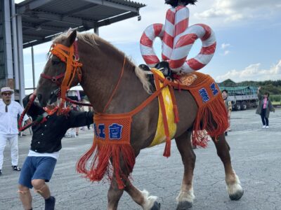 去る9月19日金曜日、TONANグループ(合志)に藤崎八幡宮秋の例大祭の飾馬を引き連れ